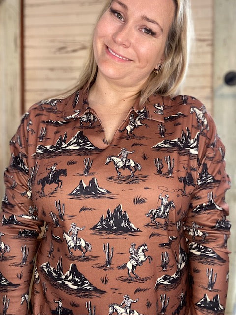 Experience the freedom of the desert with our Burn the Breeze Top. The V-neck design adds a touch of femininity while its southwest-inspired print embodies the spirit of adventure.