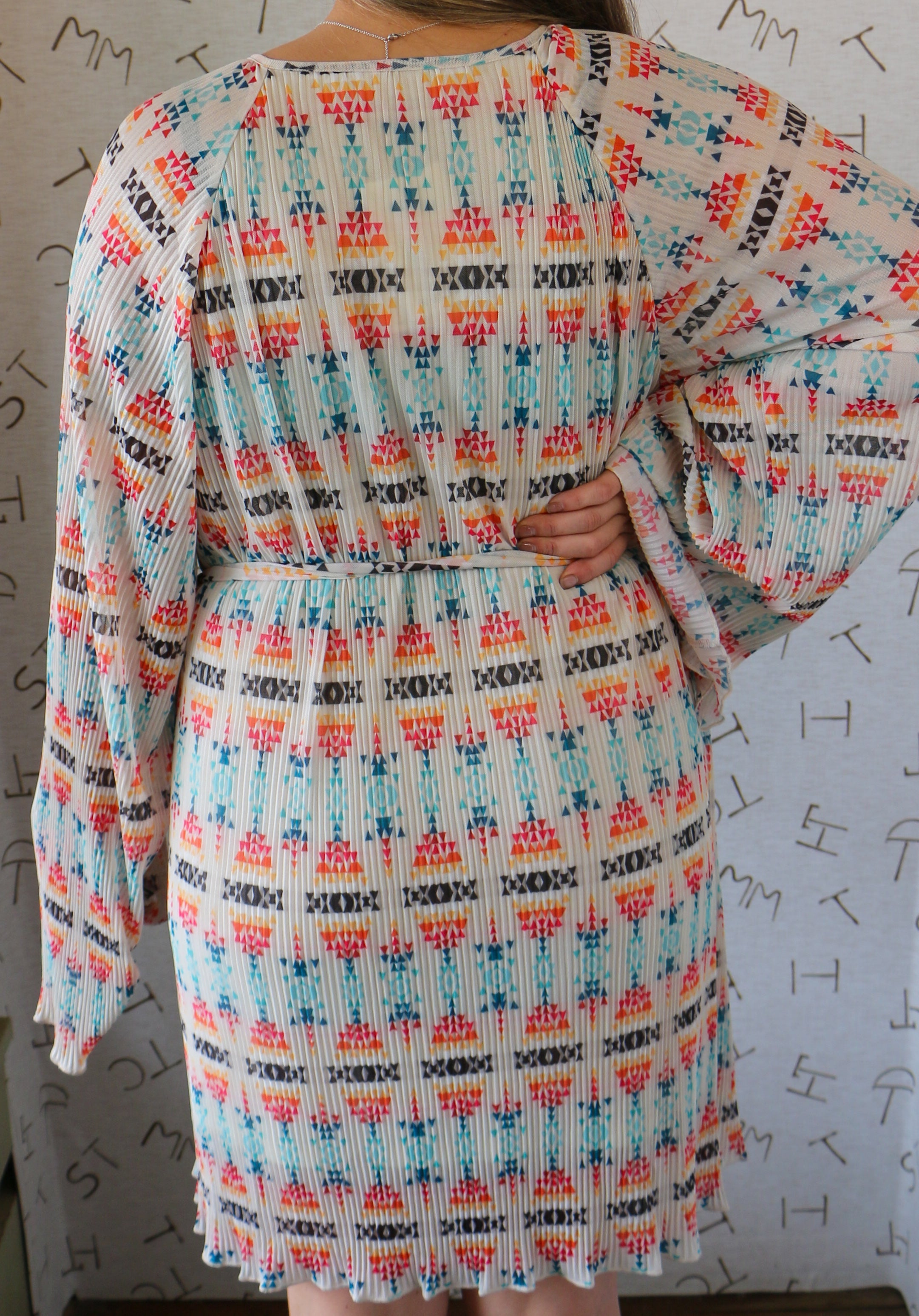 Are you ready to have some fun in our Darlene Dress! This stylish dress features a flawless Aztec print that will make you stand out from the crowd. With long sleeves and a convenient belt, it's not only fashionable but also comfortable. A must-have for any fashion-forward individual!
