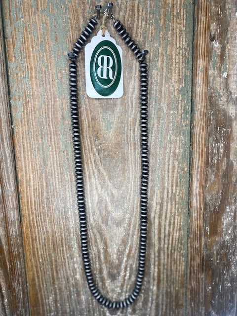 Long Silver Flat Beaded Necklace