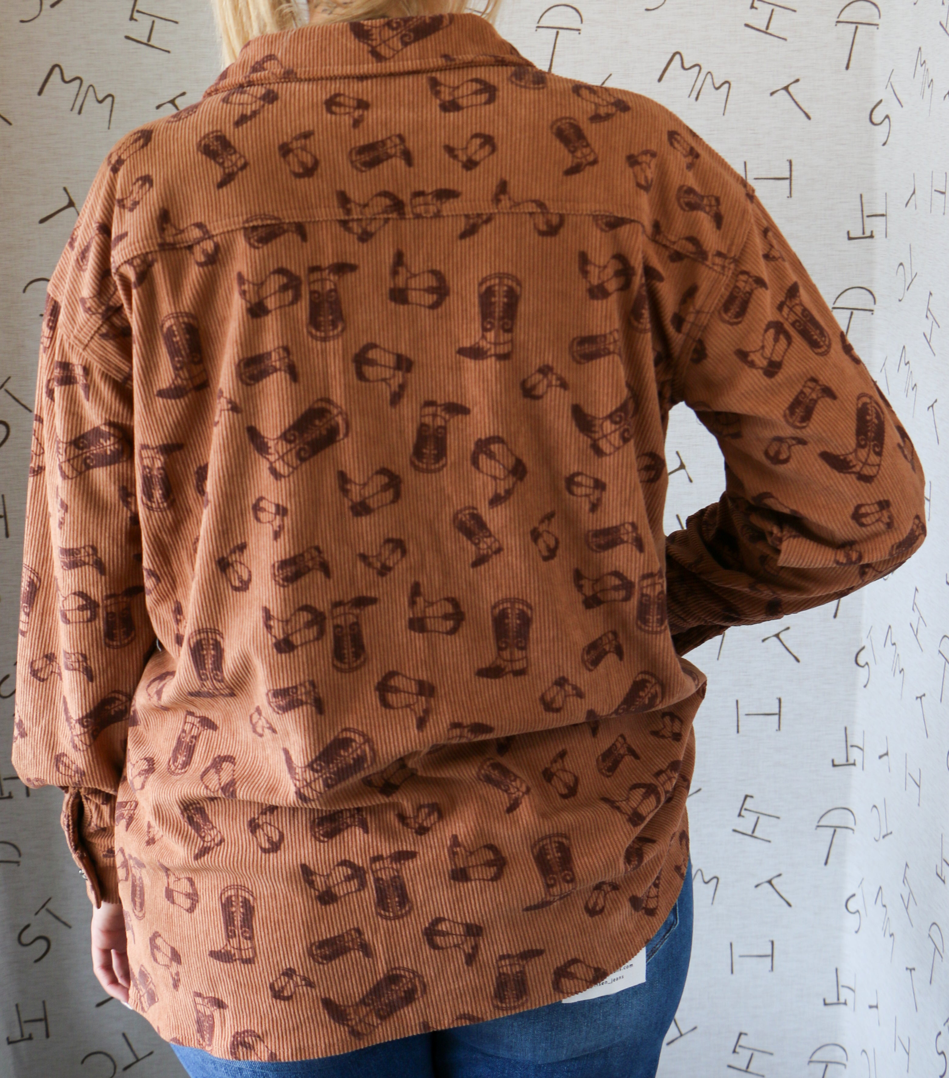 A western twist on cozy layers! This corduroy shacket features an allover boot-and-hat print that’s full of country charm. With its button-up front, chest pocket, and relaxed fit, it’s perfect for tossing on over a tee or tank. The midweight corduroy fabric makes it just right for transitioning between seasons while keeping your style playful and bold.