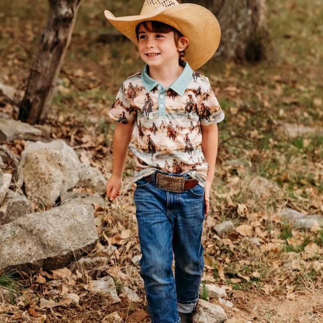 These adorable Shea Baby Print Polo Shirts are not only comfortable for your little one but also super cute. With soft and breathable fabric, this shirt is perfect for any occasion and will sure make you little cowboy turn heads!