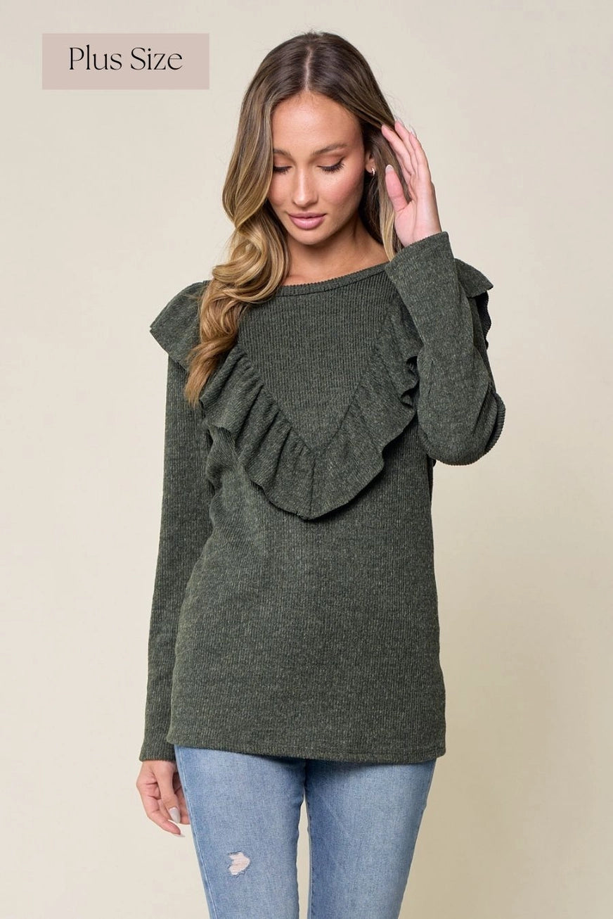 Long sleeves sweatshirt. Features a v neckline, made of a ribbed material and has a five thread solid contrast color details.