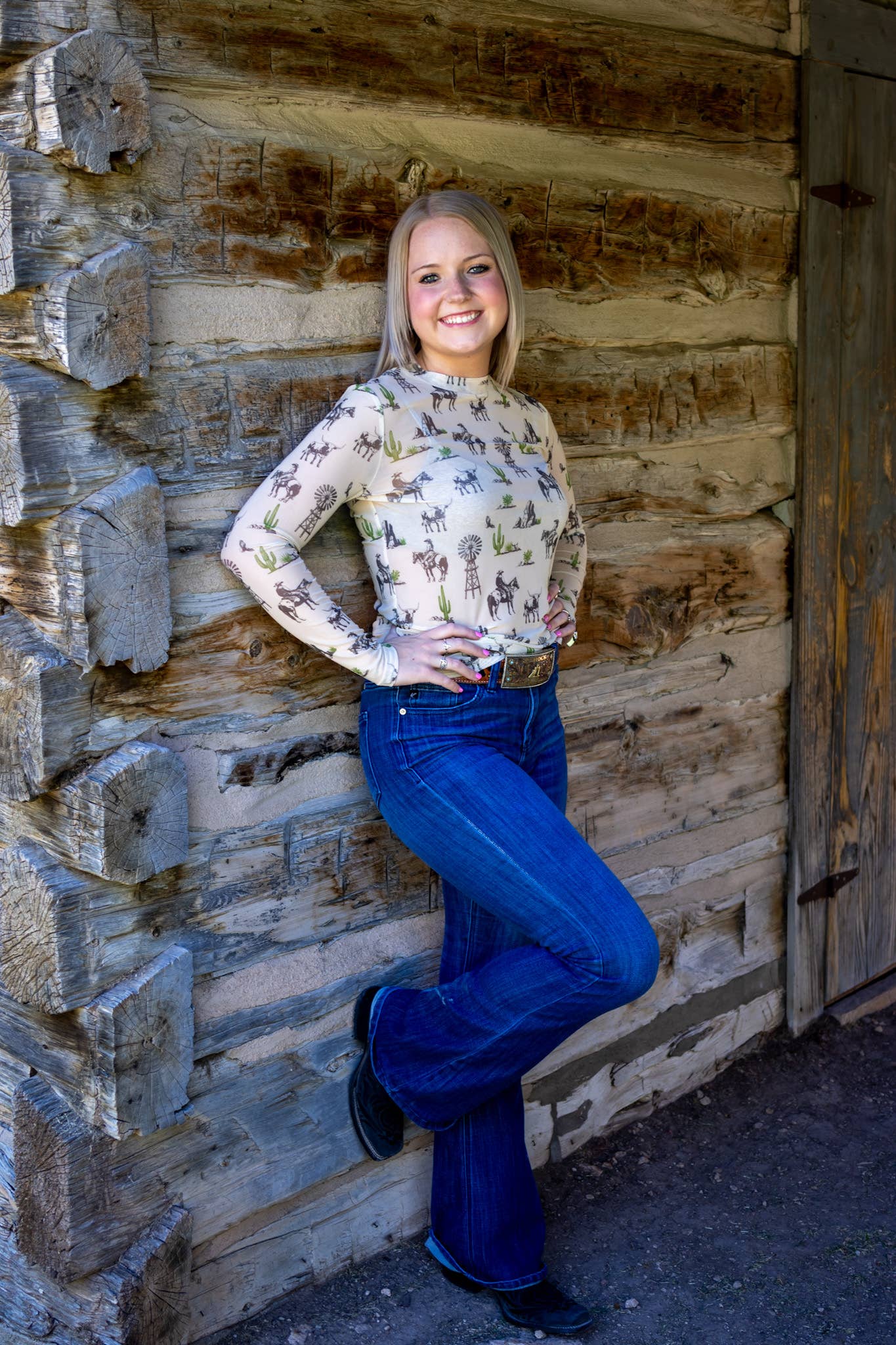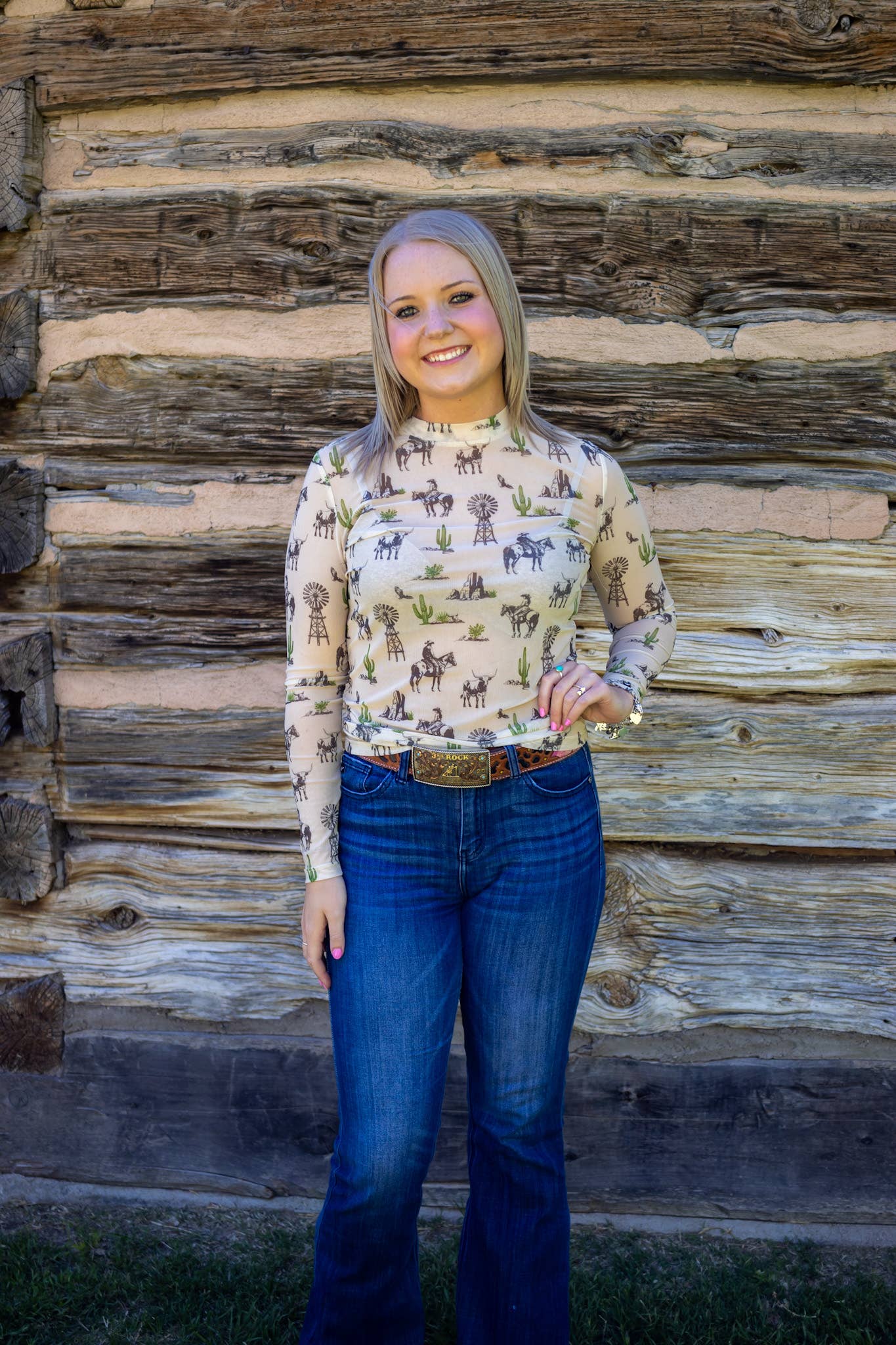 Western windmill print with cactus, cows, cowboys and cowgirls. Original print by Rockin A!